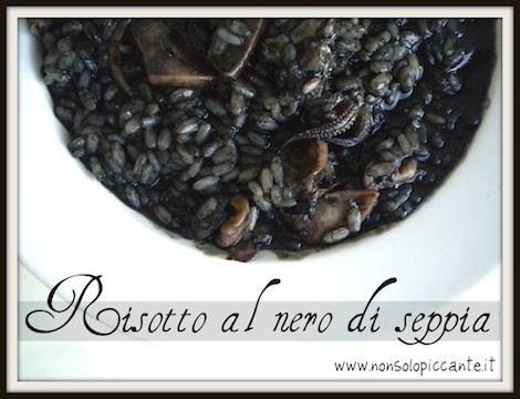 Questo risotto è molto particolare ed ha un aspetto originale dato che è completamente nero. Il risotto al nero di seppia è un piatto semplice ma molto ricercato e raffinato. L’aroma e il gusto sono inconfondibili e unici. Vi consiglio di usare seppie freschissime (chiedete al banco seppie con il nero) e di non affidarvi alle bustine di nero di seppia già preparate, non sono assolutamente la stessa cosa.